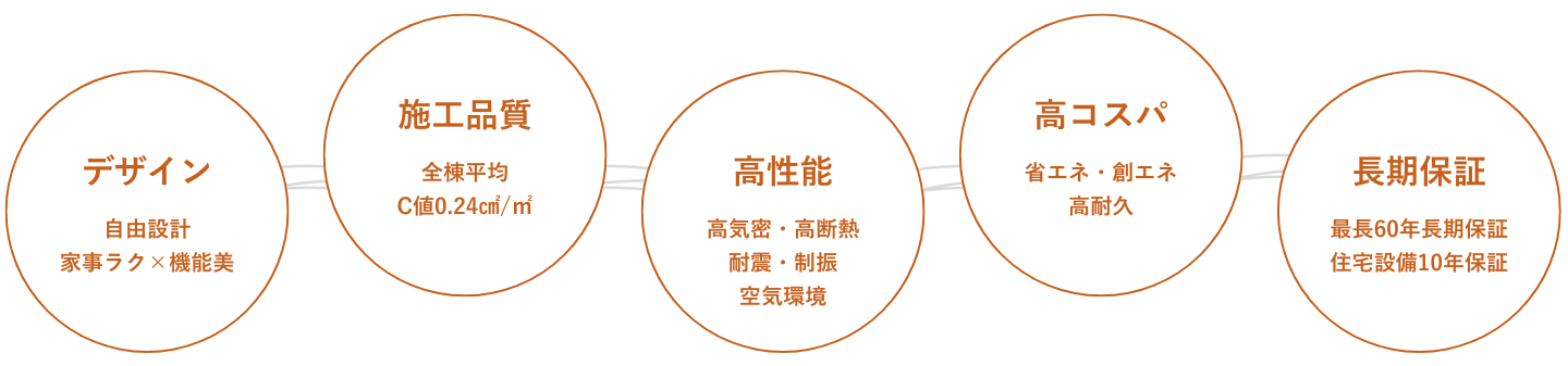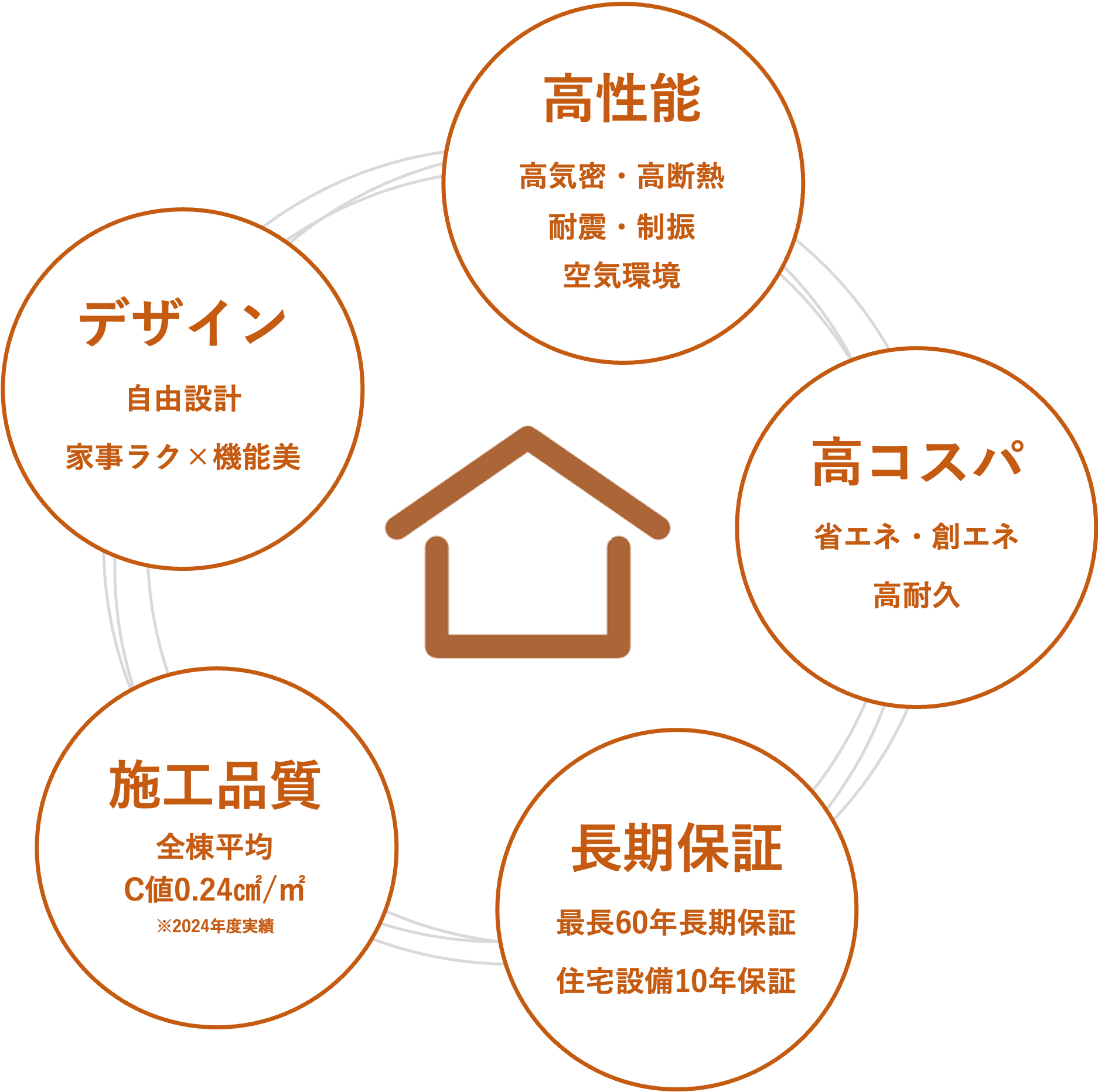 高性能な新築注文住宅を提供。“家事をなくす家“をかかげ、高気密・高断熱をはじめ、耐震性や耐久性にも優れた、永く安心して住まえる家をお届けします。